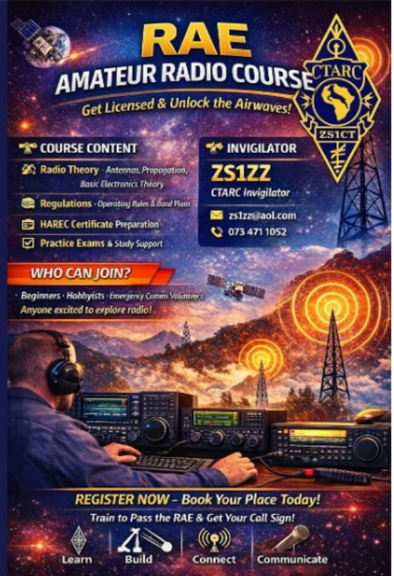 Although you can study for the examination on your own using the SARL Radio Amateur Examination Study Guide that can be downloaded free of charge from this web site, it is recommended that you enquire about RAE classes, which are held regularly in most major centres. There you will benefit from a knowledgeable instructor who will be able to assist you with all aspects of the syllabus.